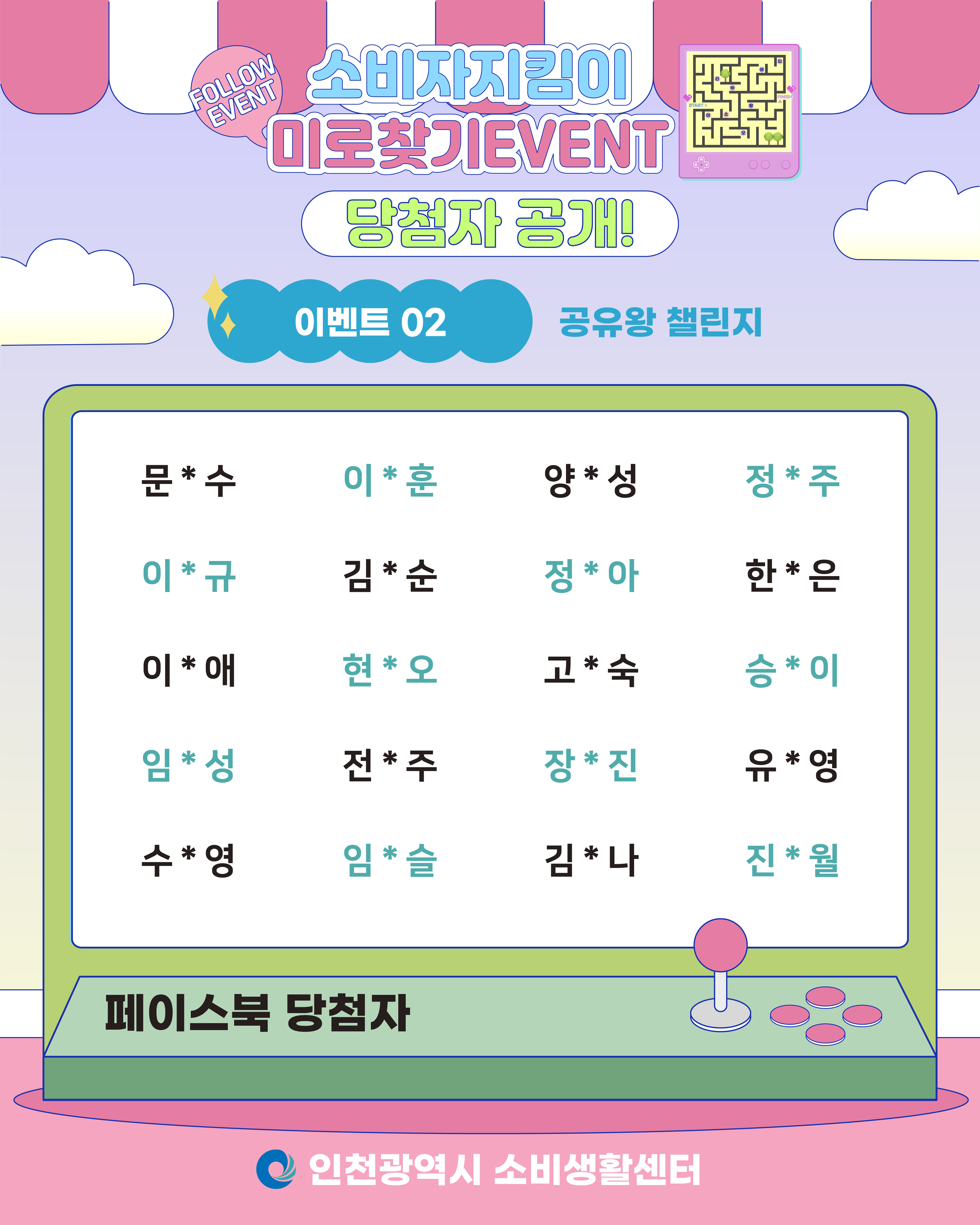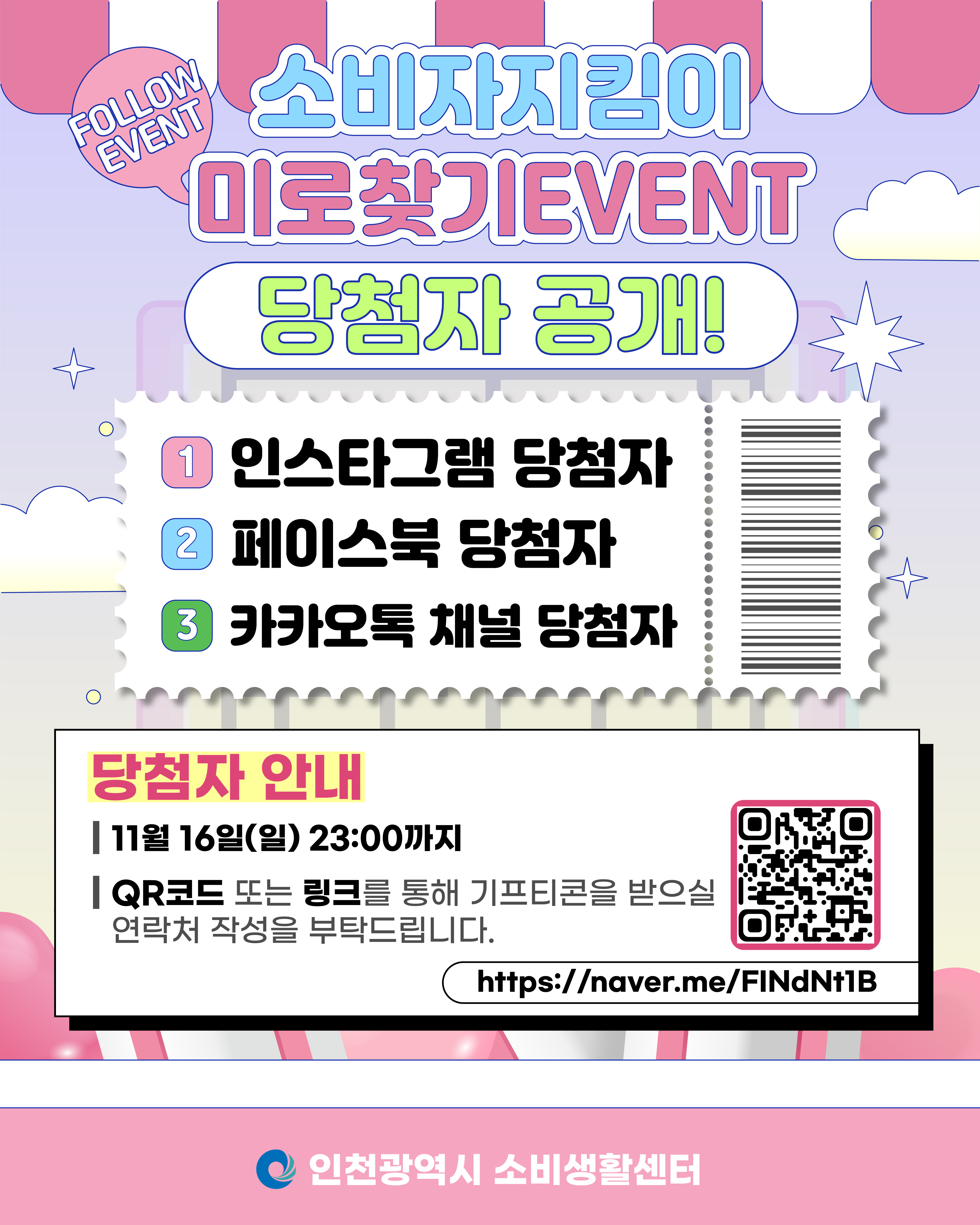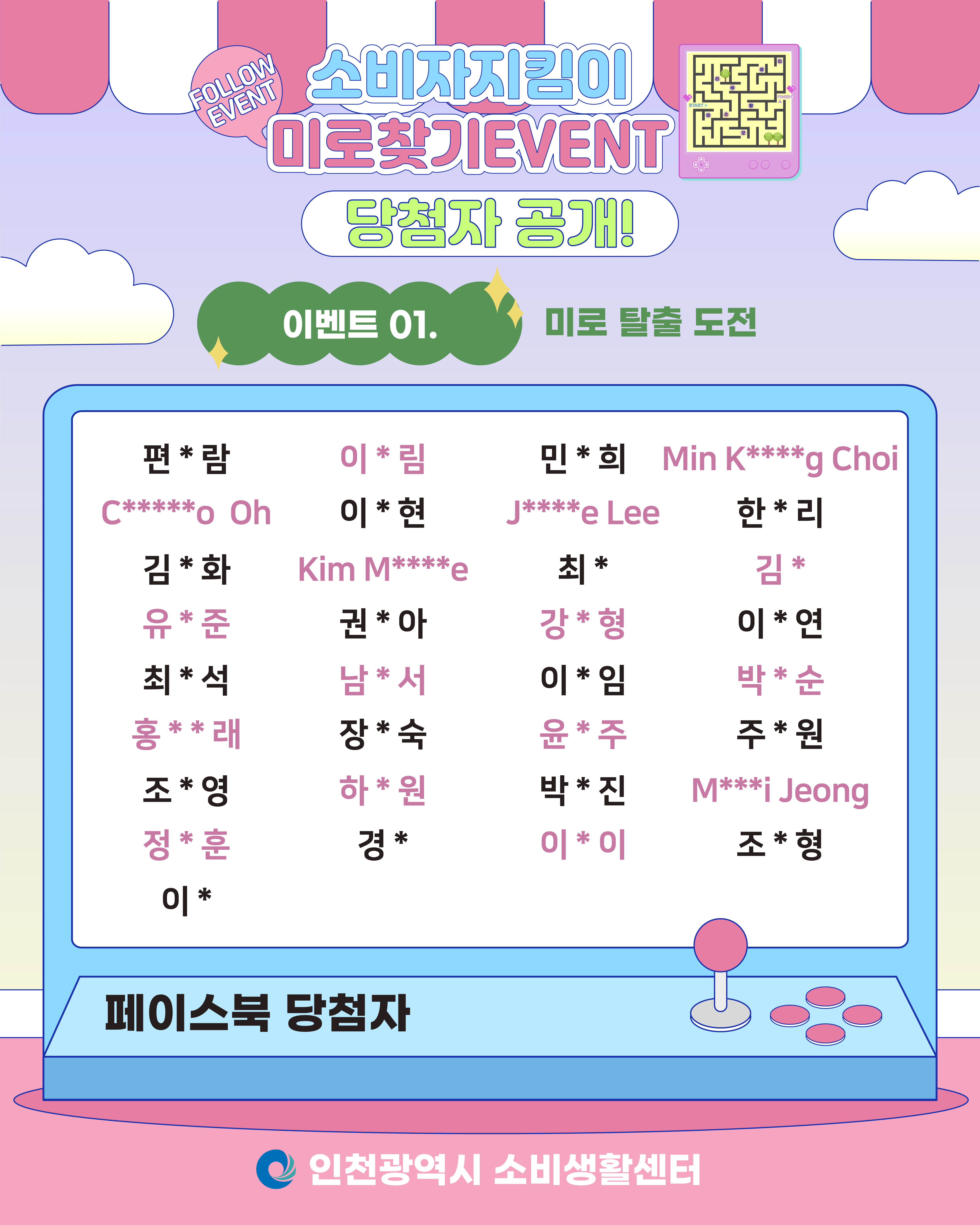 #인천광역시소비생활센터 #인천광역시 #소비자지킴이이벤트 #미로찾기이벤트 #팔로우이벤트당첨자발표