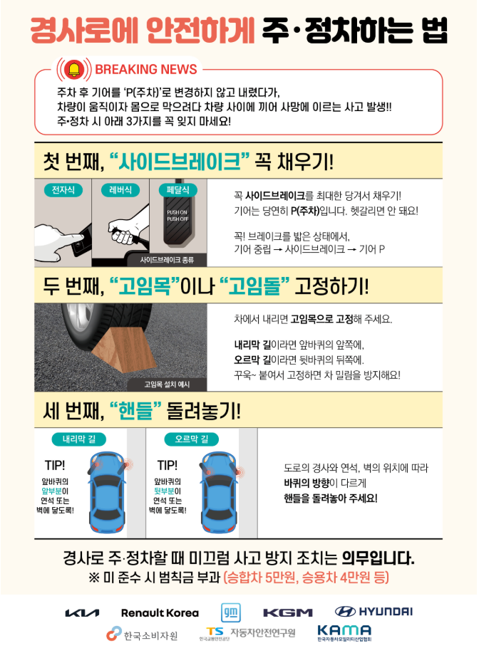경사로에 주·정차할 때 꼭 지켜야 할 세 가지!