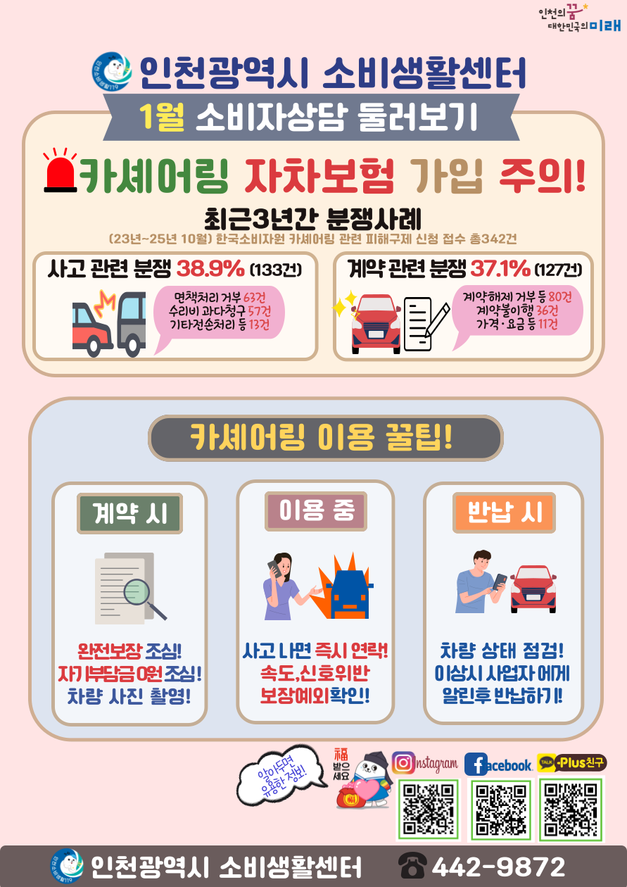 카셰어링 관련 피해구제 신청 접수 총 342건 접수(23-25년 10월 한국소비자원)
