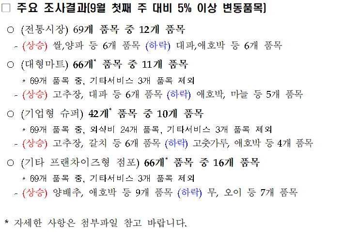 2025년 9월 셋째 주 물가조사 결과(명절 성수품 포함)
