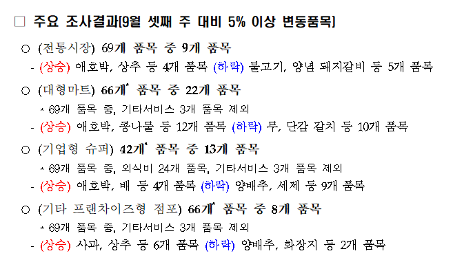 2025년 9월 다섯째 주 물가조사 결과(명절 성수품 포함)