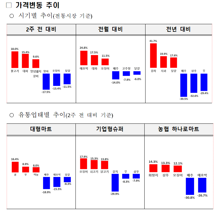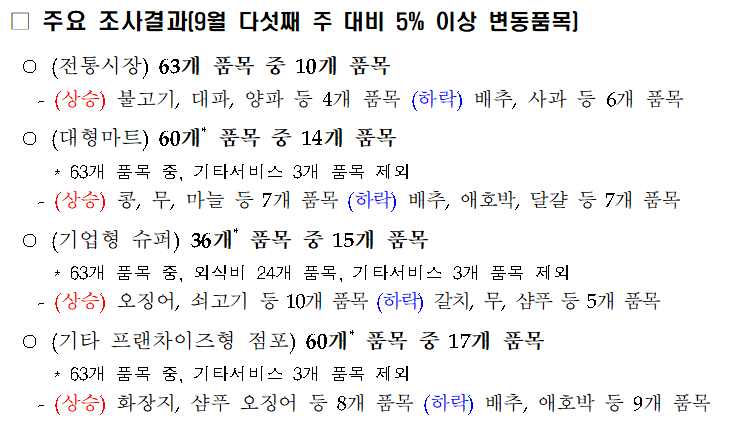 2025년 9월 다섯째 주 물가조사 결과(명절 성수품 포함)