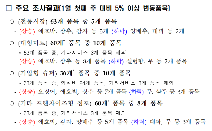 2026년 1월 첫째 주 물가조사 결과
