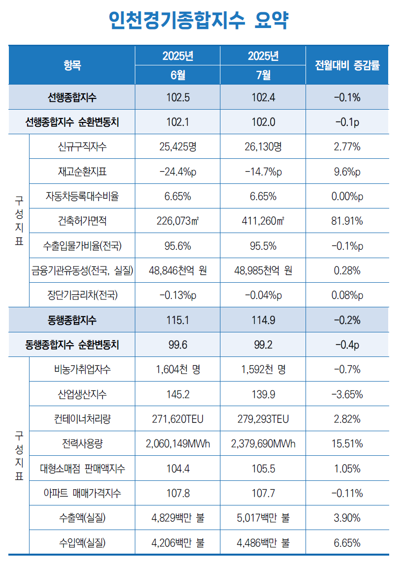 2025년 9월 인천 경기종합지수(7월 기준)입니다.