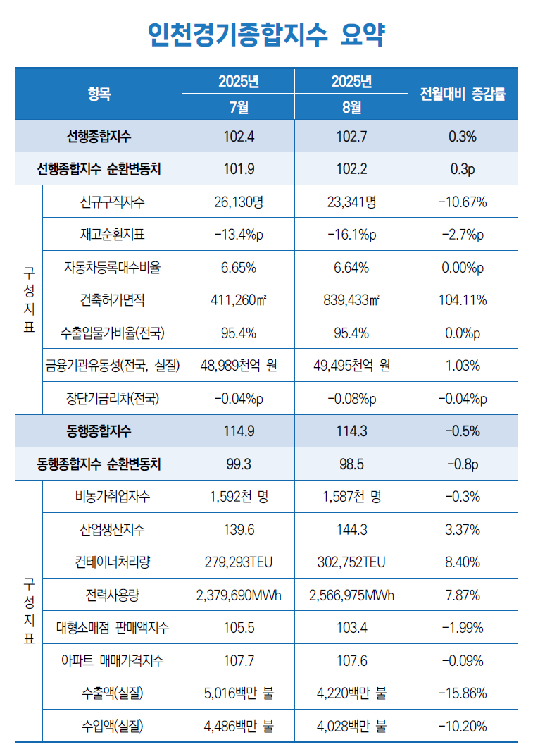 2025년 10월 인천 경기종합지수(8월 기준)입니다.