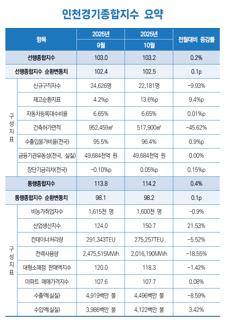 2025년 12월 인천 경기종합지수(10월 기준)입니다.