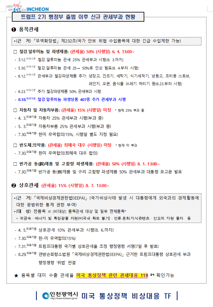 『인천광역시 미국 통상정책 비상대응 TF』에서