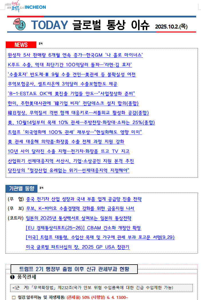 10.2.(목) TODAY 글로벌 통상 이슈(비상대응TF 관세정보 제공)