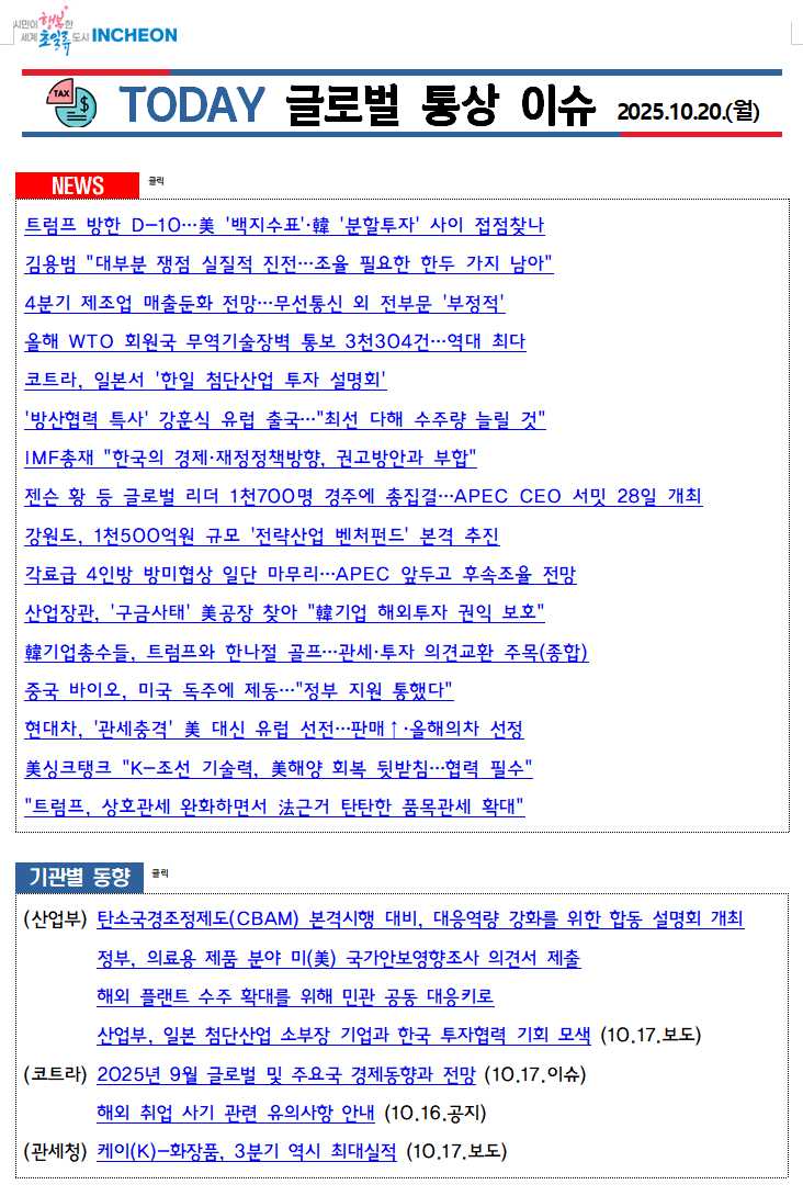 10.20.(월) TODAY 글로벌 통상 이슈(비상대응TF 관세정보 제공)
