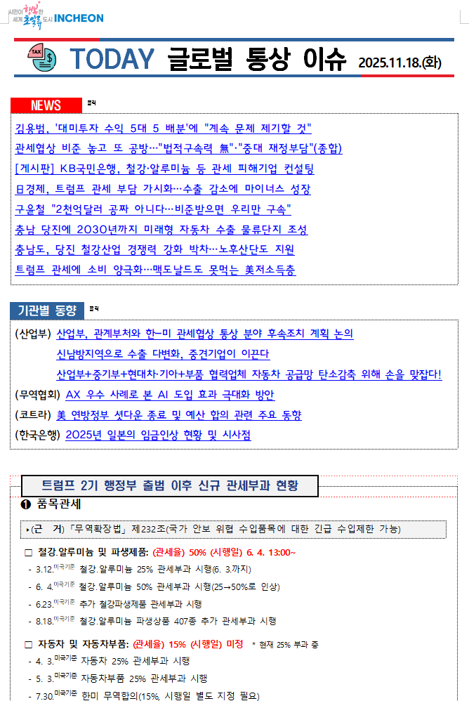 『인천광역시 미국 통상정책 비상대응 TF』에서