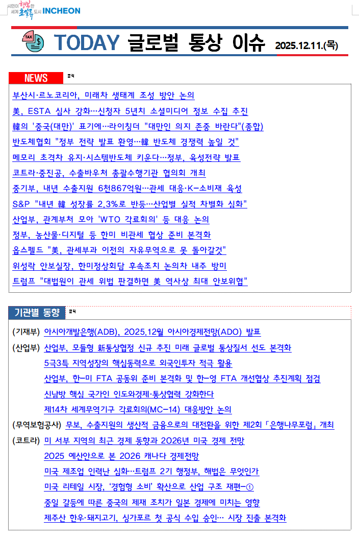 최신 관세뉴스, 수출 유관기관 동향, 트럼프 2기 행정부 출범 이후 신규 관세부과 현황, TF 참여기관 관세대응 현황 등을 모아서