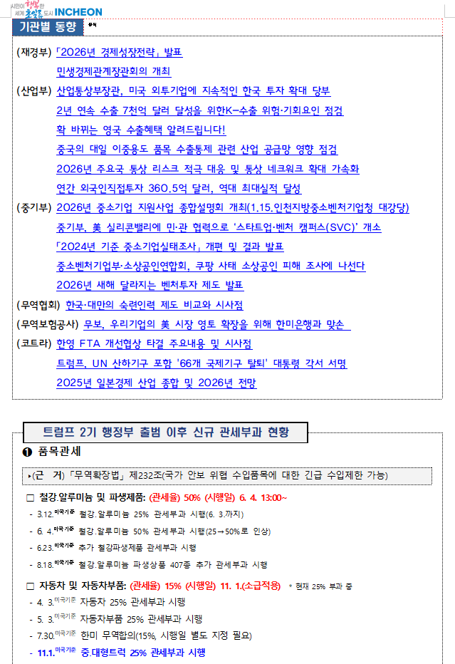 최신 관세뉴스, 수출 유관기관 동향, 트럼프 2기 행정부 출범 이후 신규 관세부과 현황, TF 참여기관 관세대응 현황 등을 모아서
