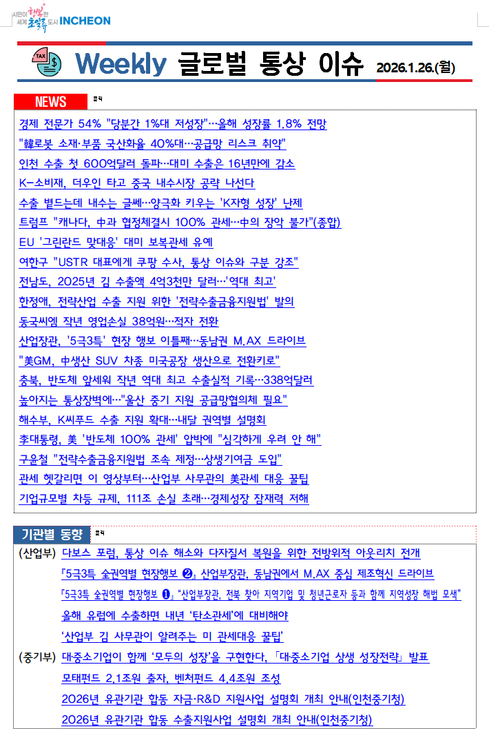 '26.1.26.(월) Weekly 글로벌 통상 이슈