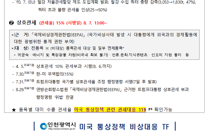 『인천광역시 미국 통상정책 비상대응 TF』에서