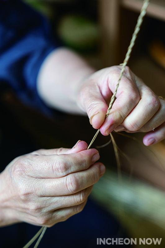 4. 촘촘하고 동일한 간격으로 엮어야 좋은 완초공예 작품이 탄생한다.