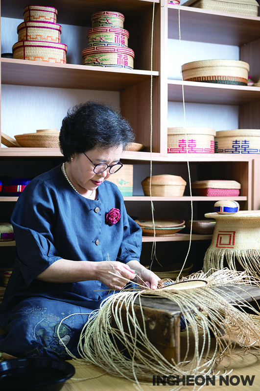 Yu Seon-ok makes efforts to preserve tradition. After she was recognized as a successor trainer in 2004, she has been actively involved in preserving tradition by training future generations at the Ganghwa Hwamunseok Culture Hall. In 2024, she was designated as a National Intangible Heritage Holder, succeeding her husband, which deepened her sense of responsibility and mission. She is currently focused on creating new works for an exhibition and plans to widely promote the beauty and value of sedge crafts through the upcoming National Intangible Heritage Exhibition and the Incheon Intangible Cultural Heritage Public Event.