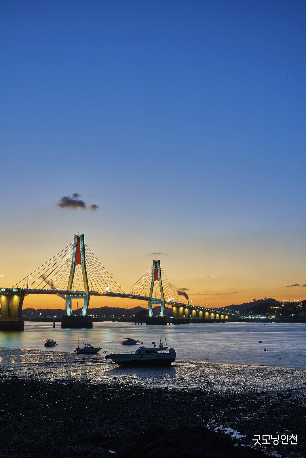 영흥대교에 불빛이 켜진다. 하나, 둘, 셋.