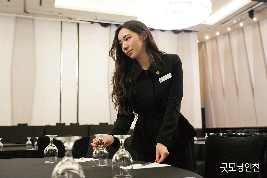 인천의 한 호텔에서 웨딩지배인으로 근무하고 있는 박수빈 씨. 여행이 좋아 관광 경영을 배우기 시작했고, 호텔이 단순한 숙박 공간이 아닌 누군가의 ‘새로운 시작’이 될 수 있다는 사실에 이끌려 지금의 일을 선택했다.