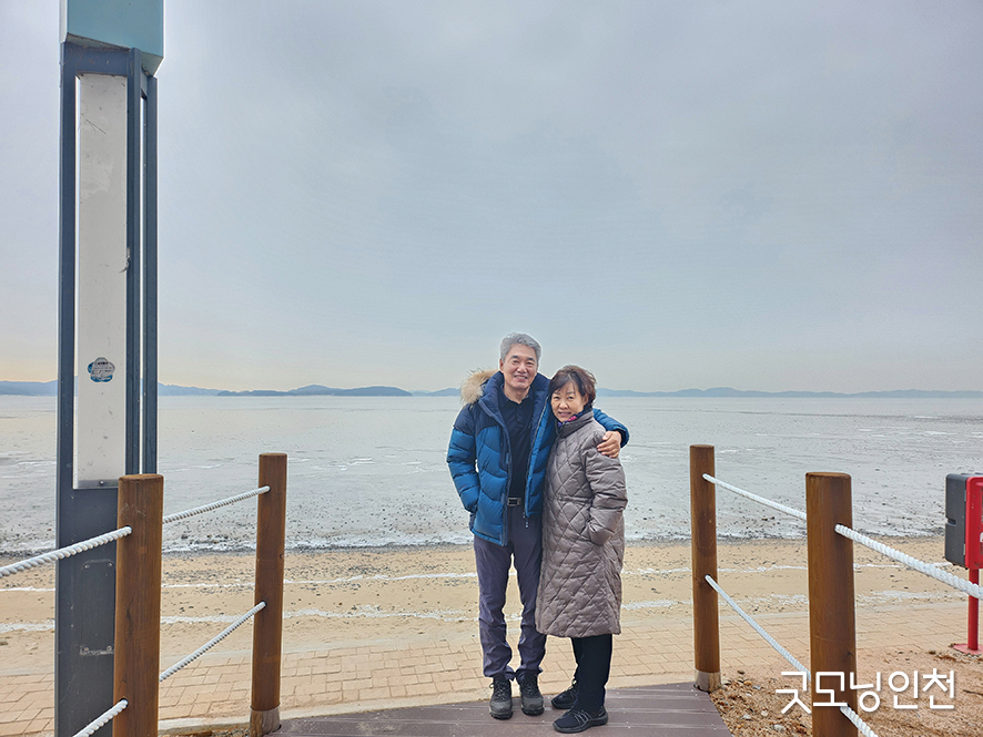 인천 겨울바다를 배경으로