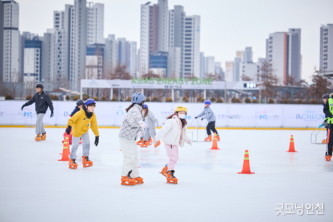 인천아시아드 야외 스케이트장은 지난해 2025년 12월 19일부터 올해 2026년 2월 18일까지 시민들을 맞이한다. 하루 6회 운영되며, 회차마다 최대 150명이 이용할 수 있다.