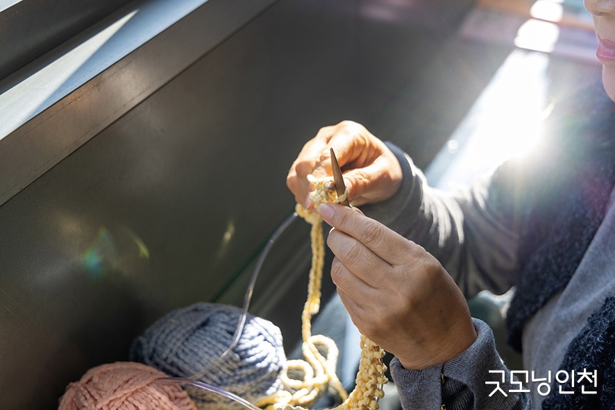 강현미 씨는 털실 뭉치를 꺼내 바늘을 움직였다.