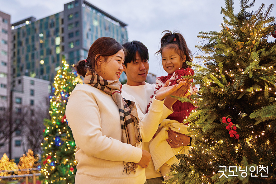 그 시간을 가능하게 하는 기본 단위는 다름 아닌 ‘가족’이다. 12월은 한 해의 마지막을 채우는 여백 같은 시기다. 12월의 어느 날, 30대 김영훈·백연수 부부와 여섯 살 딸 채이 양은 그 여백을 인천시청 앞 인천애뜰의 크리스마스트리 숲에서 채웠다. 인천 시민으로서 일곱 번째 맞는 연말의 추억, 트리 장식보다 더 반짝이는 미소가 숲에 번졌다.