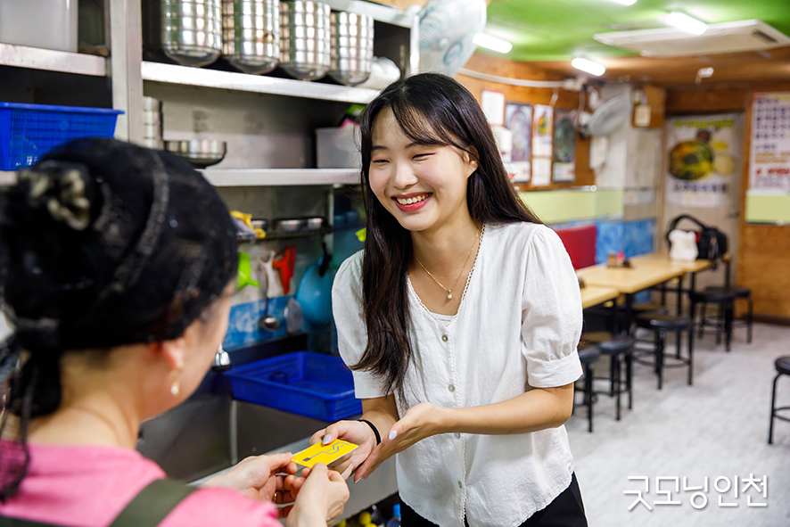 바쁜 오전 업무를 마치고 점심시간을 맞은 박서윤 시민은 든든한 한 끼를 위해 회사 문을 나섰다. ‘무엇을 먹을까?’ 잠시 고민하던 그는 도보 5분 거리에 있는 칼국수 가게를 찾았다. 맛도 좋고 양도 푸짐하지만, 인천사랑상품권(이하 인천e음)을 사용할 수 있다는 점이 더 큰 이유였다. 인천e음으로 결제하면 연 매출 30억 원 이하 가맹점에서 결제 금액의 10%가 캐시백으로 돌아오는데 한 달 30만 원 한도 내에서 최대 3만 원까지 돌려받을 수 있어 체감 효과가 크기 때문이다.