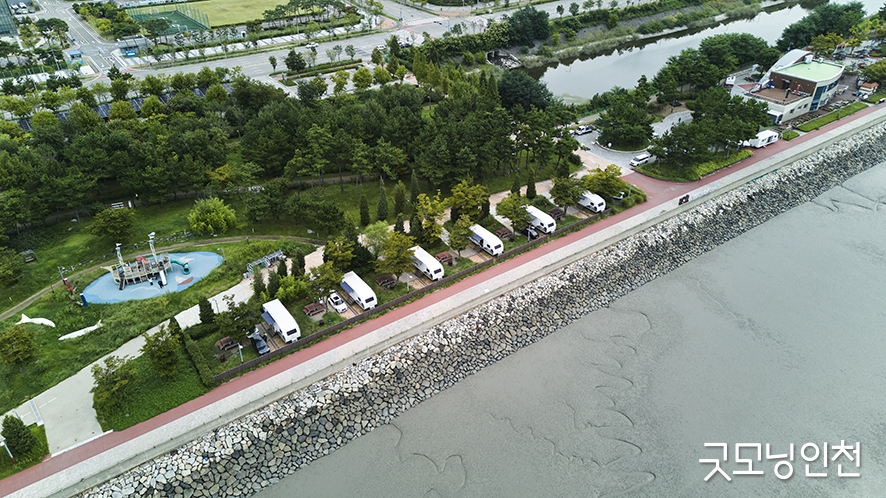 콧속을 시큰하게 하는 바람이 불기 시작한다. 바람을 따라 노랗고 빨갛게 물드는 계절, 가을이 도착했다는 증거다. 선선한 가을바람이 부는 짧은 이 계절이야말로 자연을 직접 만끽할 수 있는 특별한 시기다. 짧은 이 시기를 알차게 즐기는 법. 바로 ‘캠핑’. 대개 ‘가을’ 하면 자연스레 ‘캠핑’을 떠올린다. 그중 바다와 도시가 공존하는 인천송도국제캠핑장은 이 계절과 자연을 온몸으로 느낄 수 있는 최적의 장소다. 잔잔하게 펼쳐진 서쪽 바다를 배경으로 푸른 잔디와 나무, 은은한 조명이 여유를 선사해 캠핑의 낭만을 찾는 이들에게 안성맞춤이다. 이 가을, 도시 속 바다와 자연을 느낄 수 있는 인천송도국제캠핑장의 매력을 지금부터 소개한다.