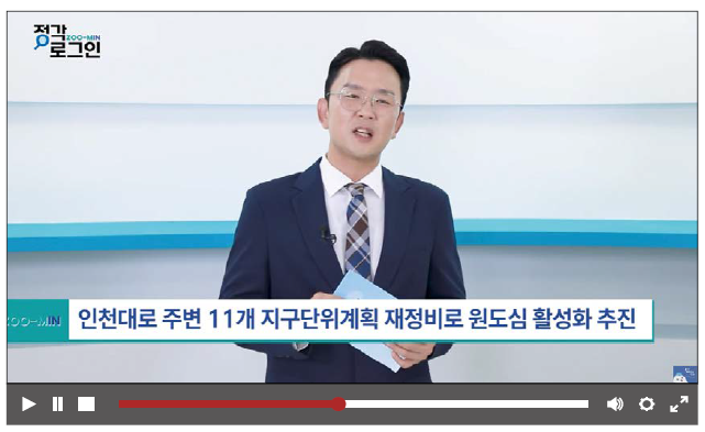 인천은 지금, 도시와 문화가 함께 성장합니다. 정각로그인줌인에서는 도시의 단절을 잇고 원도심의 활력을 되살리는 ‘인천대로 주변 11개 지구단위계획 재정비’ 소식과 청각장애 어르신들을 위한 ‘청라호수도서관 책이음 손말 프로그램’을 소개합니다.