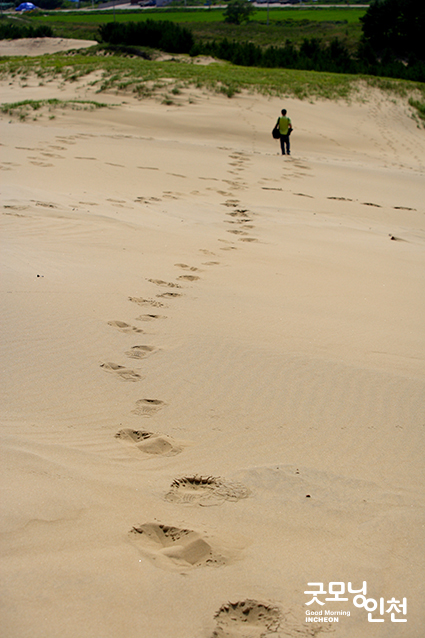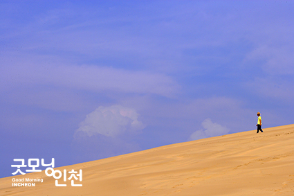대청도는 ‘모래의 섬’이다. 신기루처럼 솟은 거대한 금빛 언덕이 코발트블루의 짙푸른 바다와 대비되어 가슴에 선명한 느낌표를 찍는다. 섬은, 해변 예닐곱 개가 빙 둘러싸고 있다. 특히 농여에서 양지동으로 이어지는 해변에는 가도 가도 끝이 없는 모래언덕이 아득히 펼쳐진다. 섬 남쪽, 모래여울이라는 뜻의 사탄동에는 사탄동 해안사구가 있다. 아담하지만 발자국 하나 남지 않을 정도로 모래 결은 보드랍고 물빛은 맑다.