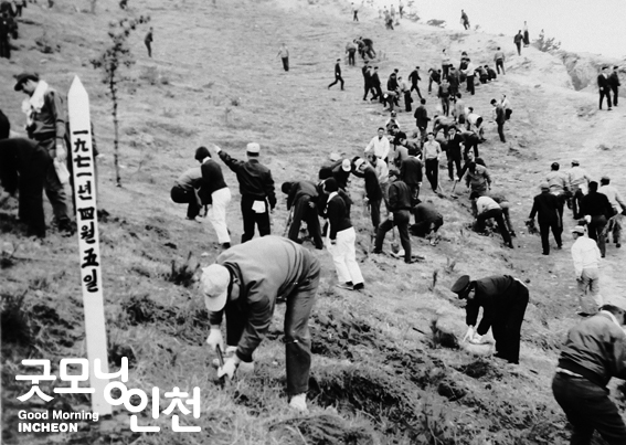 한 그루의 나무를 찍어내느니보다 한 그루의 나무를 심어 황폐한 붉은 산에 푸른 옷을 입히자는 인천시 주최 제 11회 식목행사가 청명과 한식과 식목일을 겸한 지난 5일 상오 10시 수봉사(壽鳳寺) 정원에서 김정렬 인천시장을 비롯해 시청 전 직원이 참석한 가운데 엄숙한 기념식을 거행하고 수봉산 기슭에 리기다송 1천 그루, 해송 1천 그루, 오리나무 1천 그루, 싸리 1천 그루, 도합 5천 그루의 묘목을 각각 식재하였다. 그리고 지난 10일에는 공설운동장 개수에 수반하여 제방 관람석 주변에 버드나무(10년생) 153주와 은행나무(3년생) 200주를 식재하였다고 한다. (1956년 4월 4일자)
