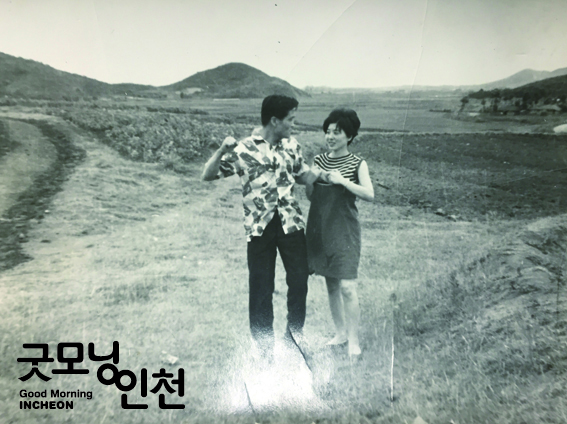 남편과 함께 한 젊은 날이 흑백 사진 속에