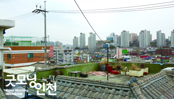 동구 금곡동 59번지에서 바라다본 주안염전 방향. 훤히 보였던 주안염전이 지금은 아파트 때문에 시야를 가리고 있다.