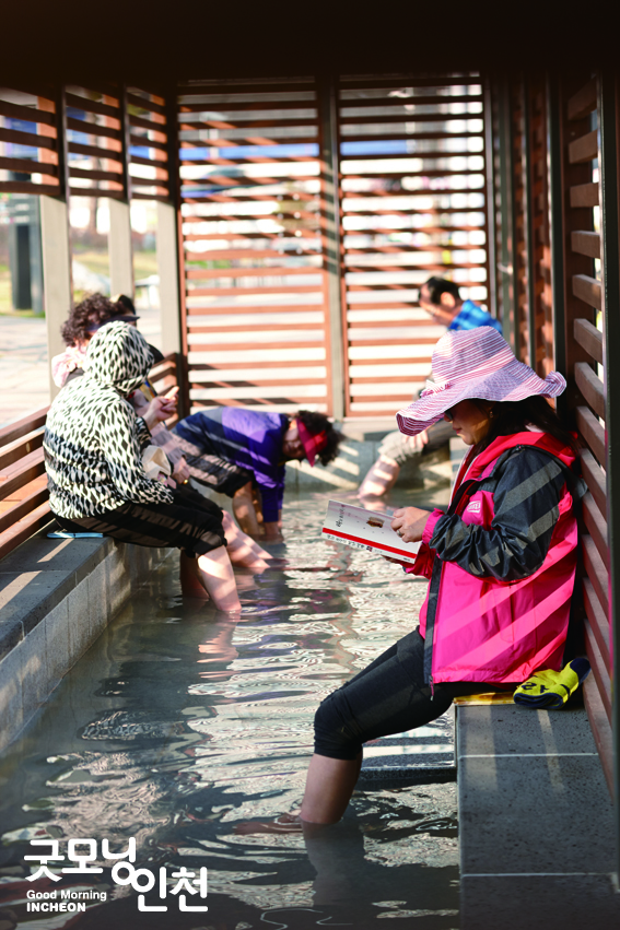 POINT 1 한낮의 빛이 소멸되어 갈 즈음엔 수로 끝에 있는 G타워 뒤편으로 달려가 보자. 전망대 ‘오션스코프(OceanScope)’에 서면, 노을 내린 바다 위 인천대교가 한 폭의 그림으로 곱게 피어난다. POINT 2 ‘사랑의 섬’은 센트럴공원의 새로운 즐겨찾기 명소다. 사랑의 증표인 자물쇠는 1만원으로 이스트보트하우스에서 구입한다. 사랑하는 이에게 편지를 보내면 1년 후에 도착하는 ‘느림보 우체통’도 특별한 추억을 선사한다. POINT 3 이스트보트하우스에 있는 해수족욕탕은 오전 10시부터 오후 10시까지 운영하며 무료로 이용할 수 있다.