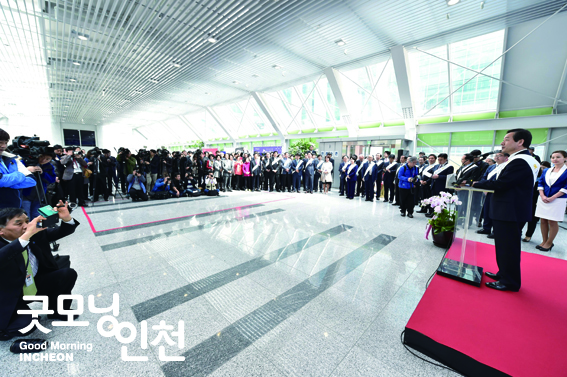 유 시장은 “우리는 오늘 자랑스러운 역사와 문화를 갖고 있는 인천의 가치와 무한 잠재 역량을 최고로 발휘하여 시민이 행복한 새로운 인천을 실현시켜 나가면서 대한민국의 희망찬 내일을 열어가고자 한다”며 “이에 300만 인천시민의 뜻을 모은 우리의 비전 ‘인천의 꿈, 대한민국의 미래’를 힘차게 선포한다”고 밝혔다.