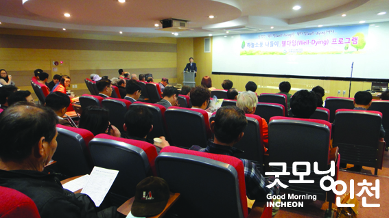 죽음에 대한 진지한 성찰의 시간을 경험하는 ‘웰다잉(Well-Dying) 프로그램’의 하나로 마련된 이날 행사에는 노인 100여 명이 참여했다. 행사는 죽기 전 꼭 하고 싶은 일을 적는 버킷리스트 작성, 유언장 작성, 입관 체험 등으로 구성됐다. 아울러 늘푸른잔디장, 솔향기 정원수목장, 봉안당 현장견학과 장례문화 교육도 함께 이뤄졌다. 인천가족공원은 이날 행사를 시작으로 10월까지 매월 1회 하늘소풍나들이 행사를 운영할 계획이다. 문의 노인종합문화회관 ☎457-5382