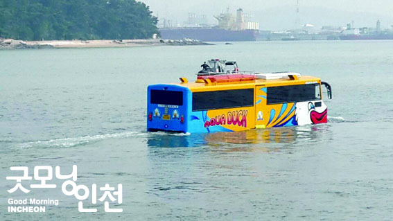 국내 최초의 수륙양용 버스가 지난달 21일 경인아라뱃길에서 첫선을 보였다.
