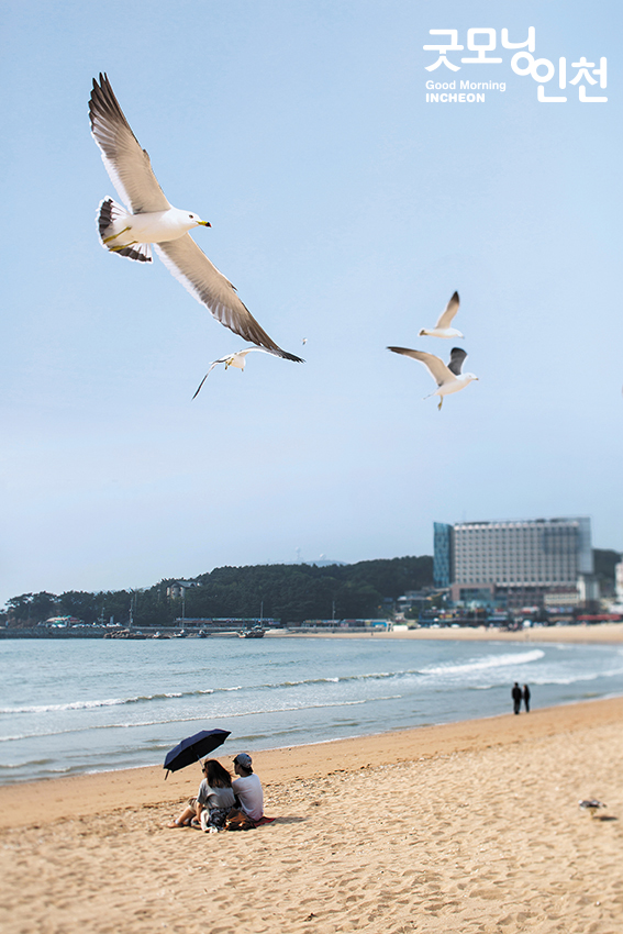 바다를 더 가까이에서 느끼고 싶다면, 호텔에서 차로 10분 거리에 있는 을왕리 해수욕장으로 발걸음을 옮기면 된다. 해변은 초승달 모양으로 길게 뻗은 모래사장 뒤로 솔숲이 울타리처럼 둘러쳐져 아늑하다. 휴가철이면 밀려드는 인파로 몸살을 앓는 바다는 이제야 본연의 아름다움을 자아내고 있었다. 하지만 바닷가 주변으로 즐비한 조개구이 집은 여전히 왁자지껄하다. 피하지 못하면 즐기라고 했다. 호객행위 하는 아줌마에게 이끌려 조개구이를 후후 불어 먹는 재미도, 이곳에서 누릴 수 있는 여행의 묘미라 생각하면 즐겁다.