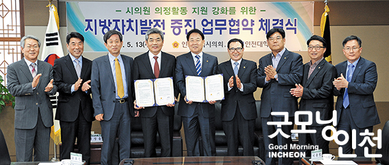인천시의회와 인천대학교는 지난달 13일(수)에 ‘시의원 의정활동 지원 강화를 위한 지방자치발전 증진 업무협약’을 체결했다. 이번 업무협약은 2013년 6월 10일 제6대 의회 때 체결한 협약 내용의 일부를 보완·수정하여 제7대 의회 기간에도 계속하여 운영하기로 하였으며, 주요 보완 내용은 시의원이 대학원 재학 시는 물론 대학(학과, 학부)에 재학 시에도 수업료의 50% 이상을 장학금으로 지원하고 시의원의 직무능력 향상과 의정역량 강화를 위한 파워엘리트 프로그램 운영 등 교육지원 사업이다.