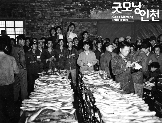 ② 수협 위판장 : 인천역 뒤편에는 앞바다에서 걷어 올린 생선을 경매하는 수협 위판장이 있었다. 주변에는 어시장의 좌판들과 어물전 수십 개가 성시를 이루었다. 조기를 비롯한 어류와 굴, 조개 등의 패류를 취급했다. 노량진 수산시장이나 인천 시장 상인들은 하인천에서 수산물을 사다가 팔았다. 서울을 오가던 ‘다라이’ 생선아줌마들은 70년대 전철 속 한 풍경이었다. 광복과 6.25 전쟁을 거친 뒤에도 오랜 세월 수도권의 중심 어시장이었던 하인천 부두는 1975년 항동의 연안부두로 어시장이 옮겨가면서 흔적도 없이 사라져 버렸다.