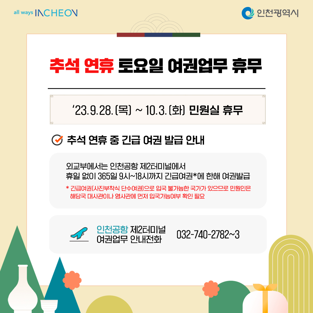 2023 추석 연휴 시민 편의사항 안내