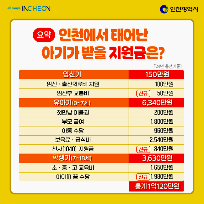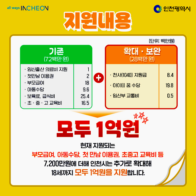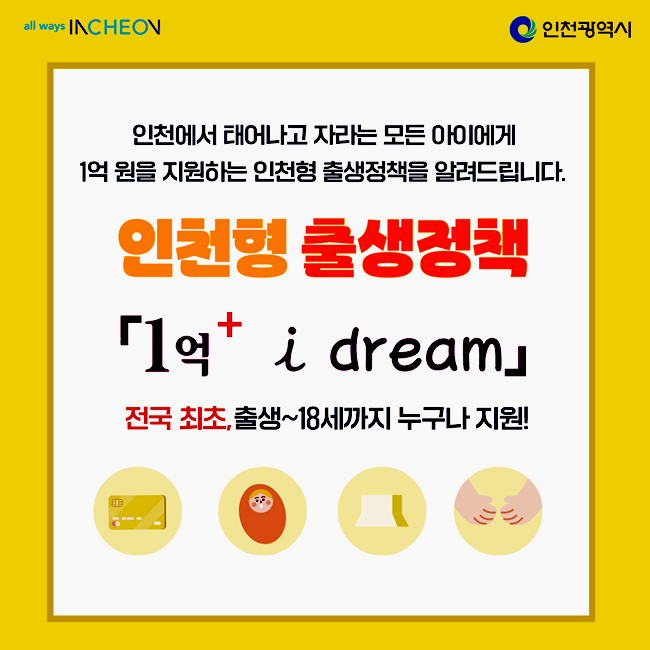 인천 출생 모든 아이에게 18세까지 1억원 지원!