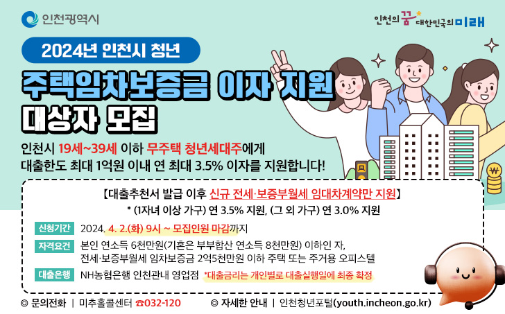 인천 청년 주택임차보증금 이자 지원 대상자 모집