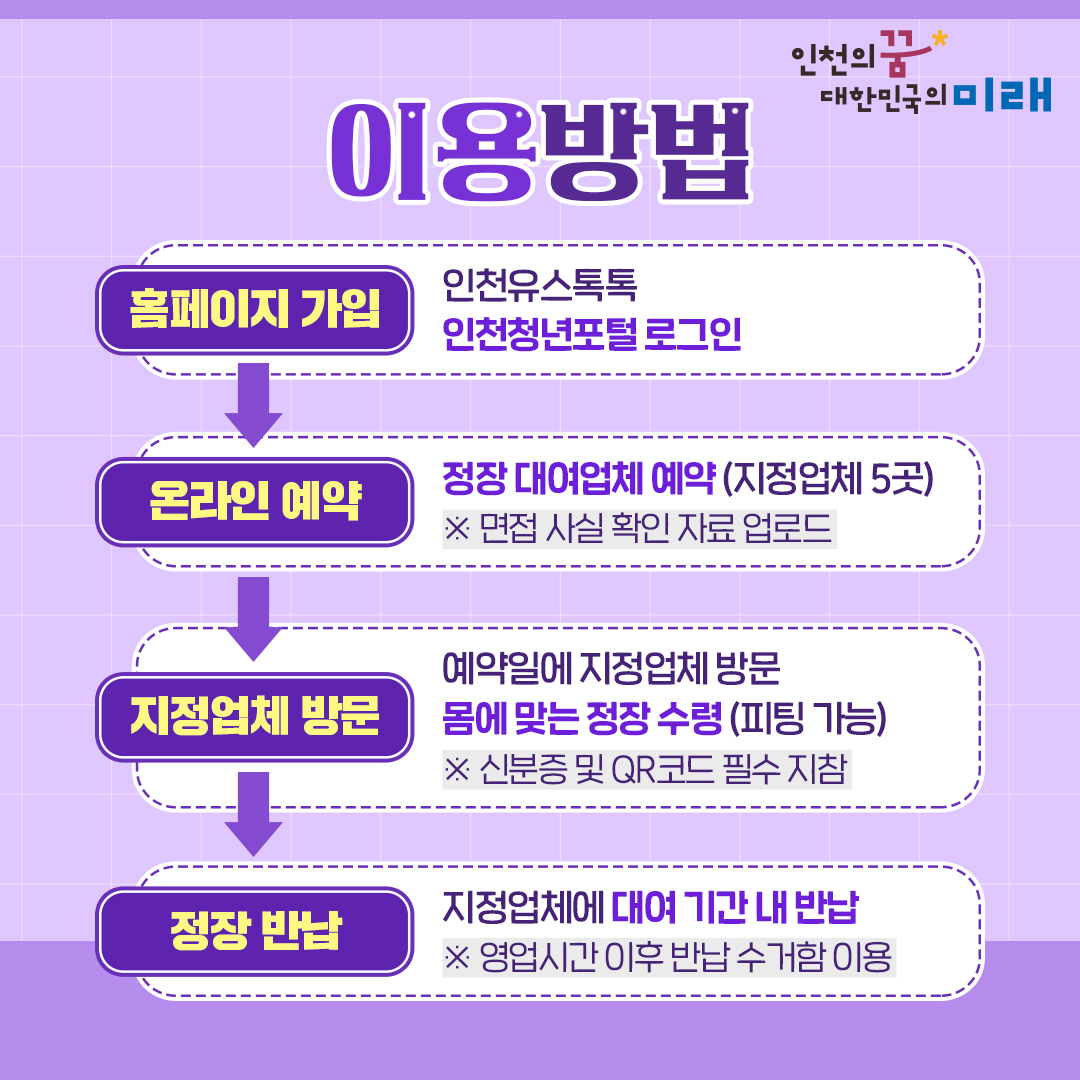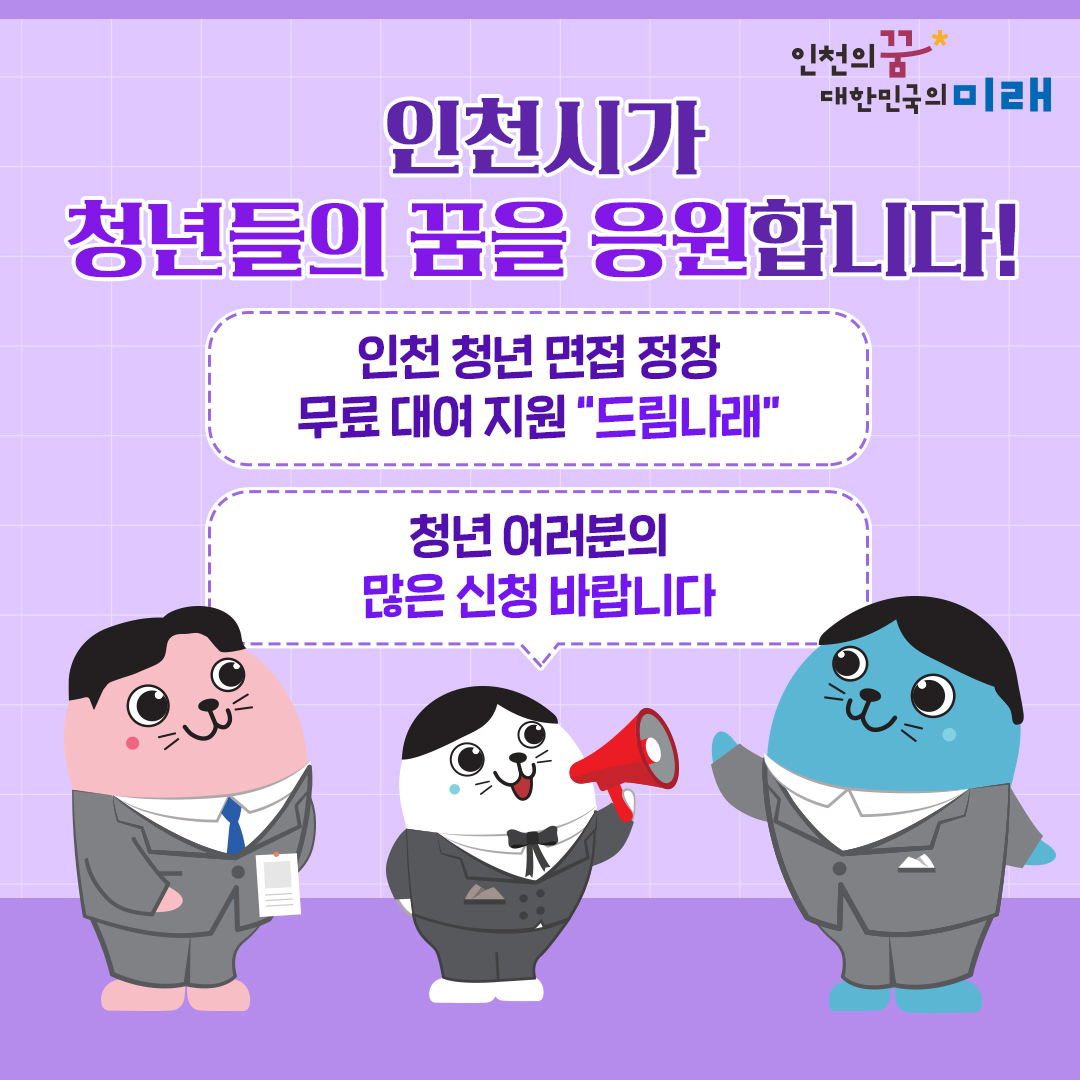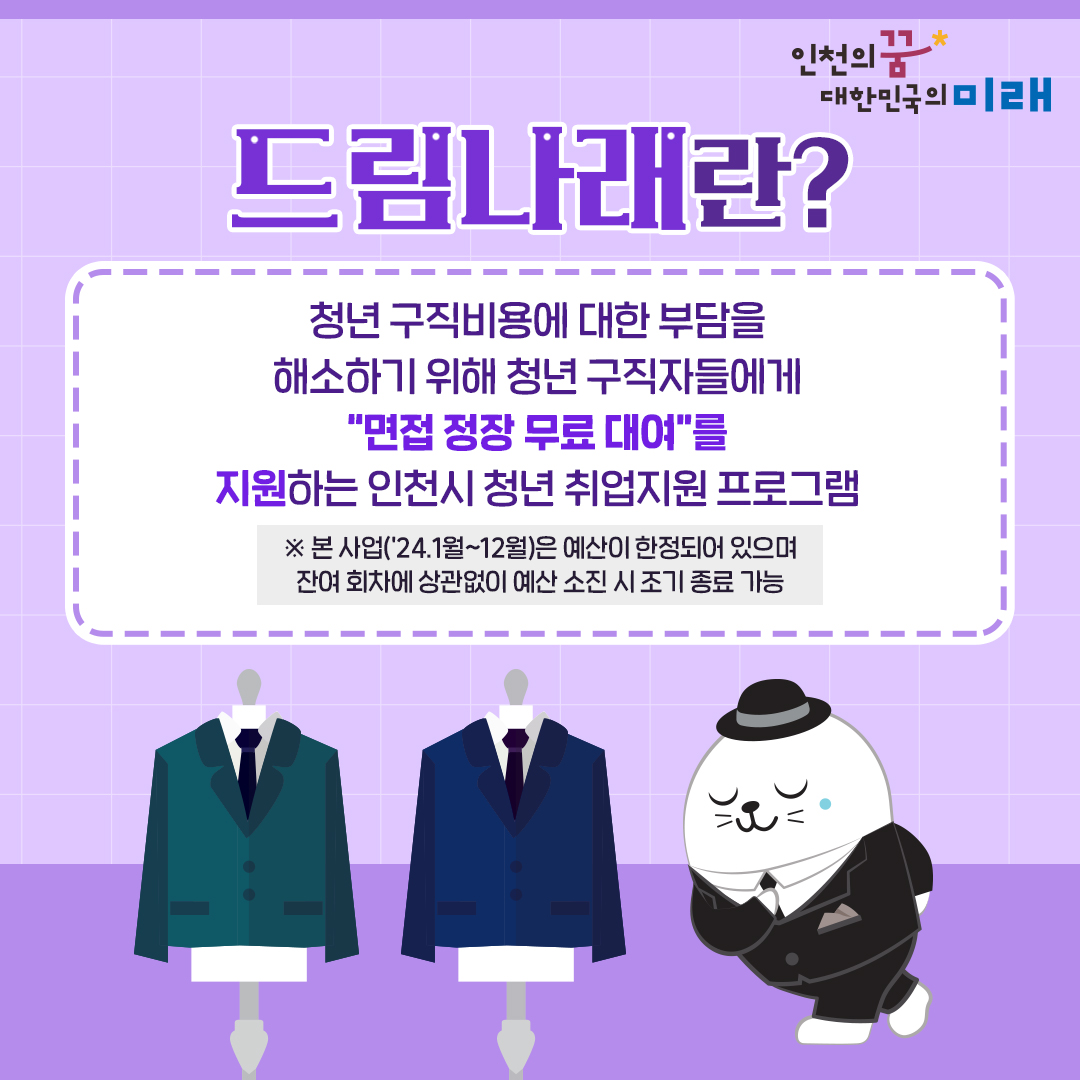 인천시 면접 정장 무료 대여 지원, 드림나래 안내