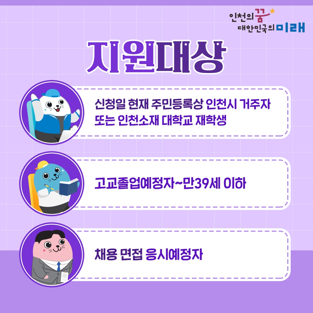 ✅ 지원대상 : 고교 졸업 예정자 ~ 만 39세 이하 인천 청년