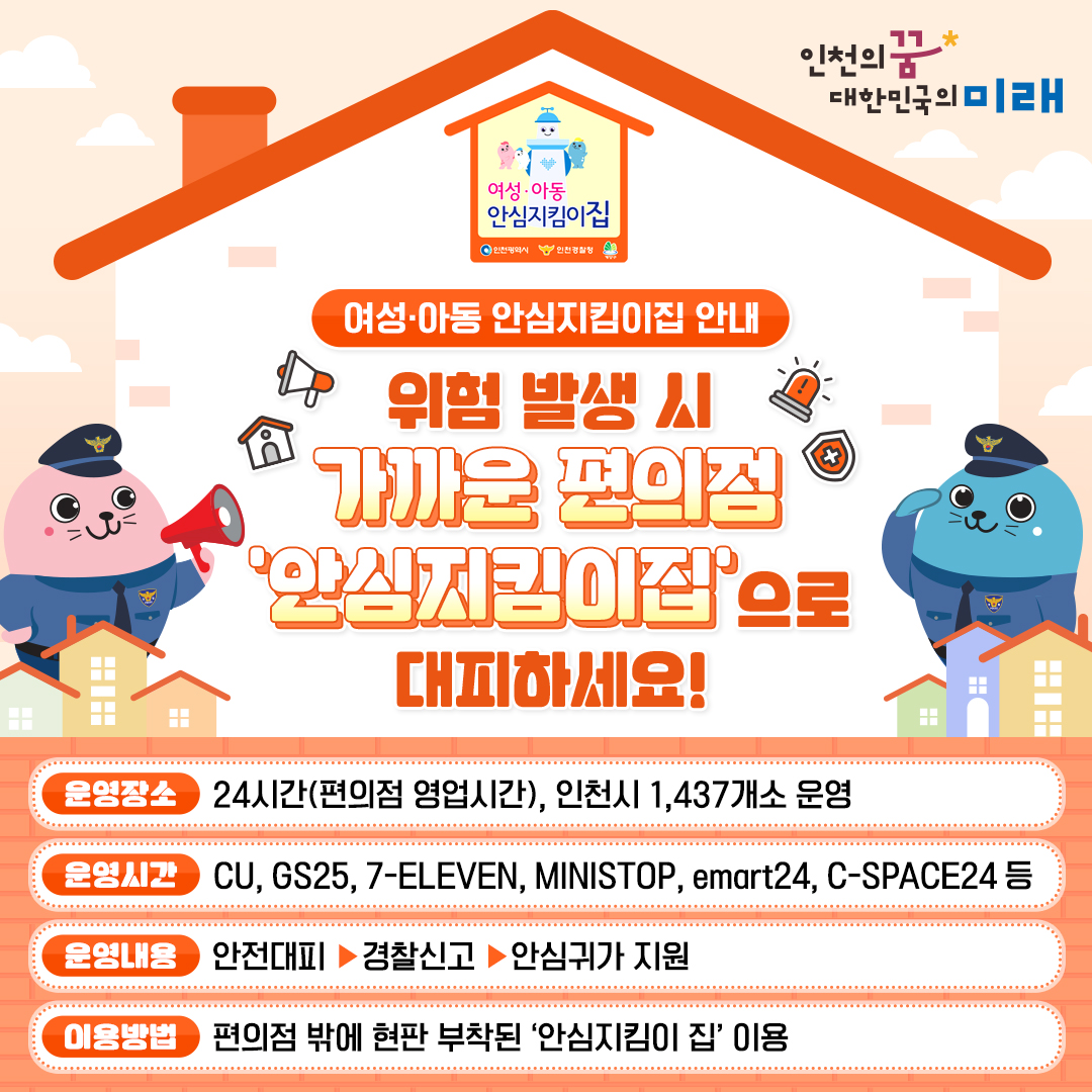 위험 발생 시 가까운 편의점 '안심지킴이집'으로 대피하세요!