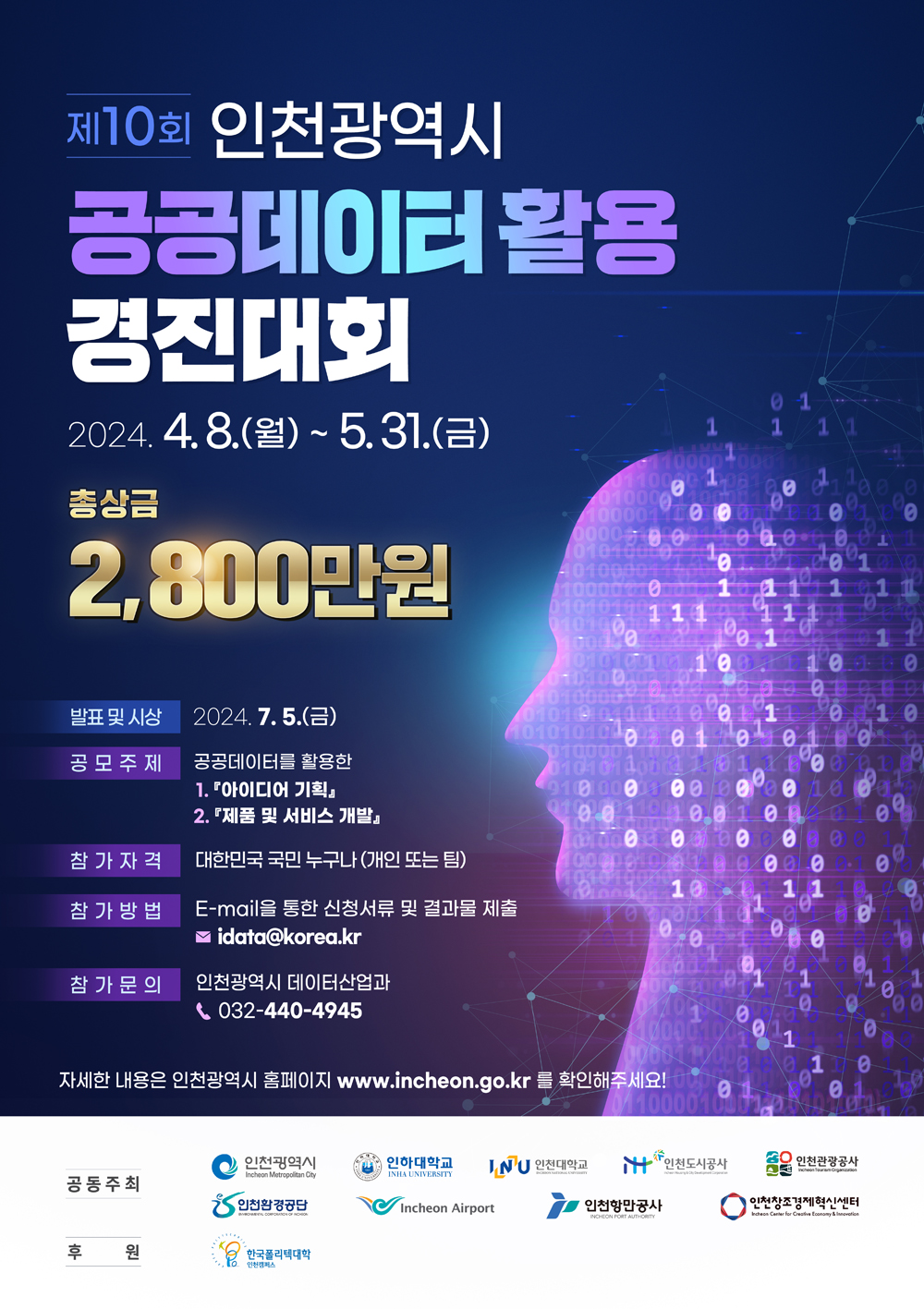 2024년 제10회 인천광역시 공공데이터 활용 경진대회에 많은 관심과 참여 바랍니다.