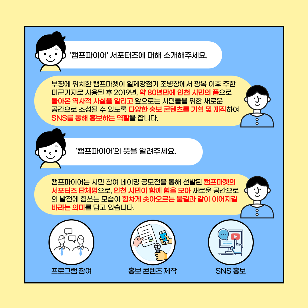 ▶자세한 사항▶ 캠프마켓 홈페이지 https://www.incheon.go.kr/campmarket 참고