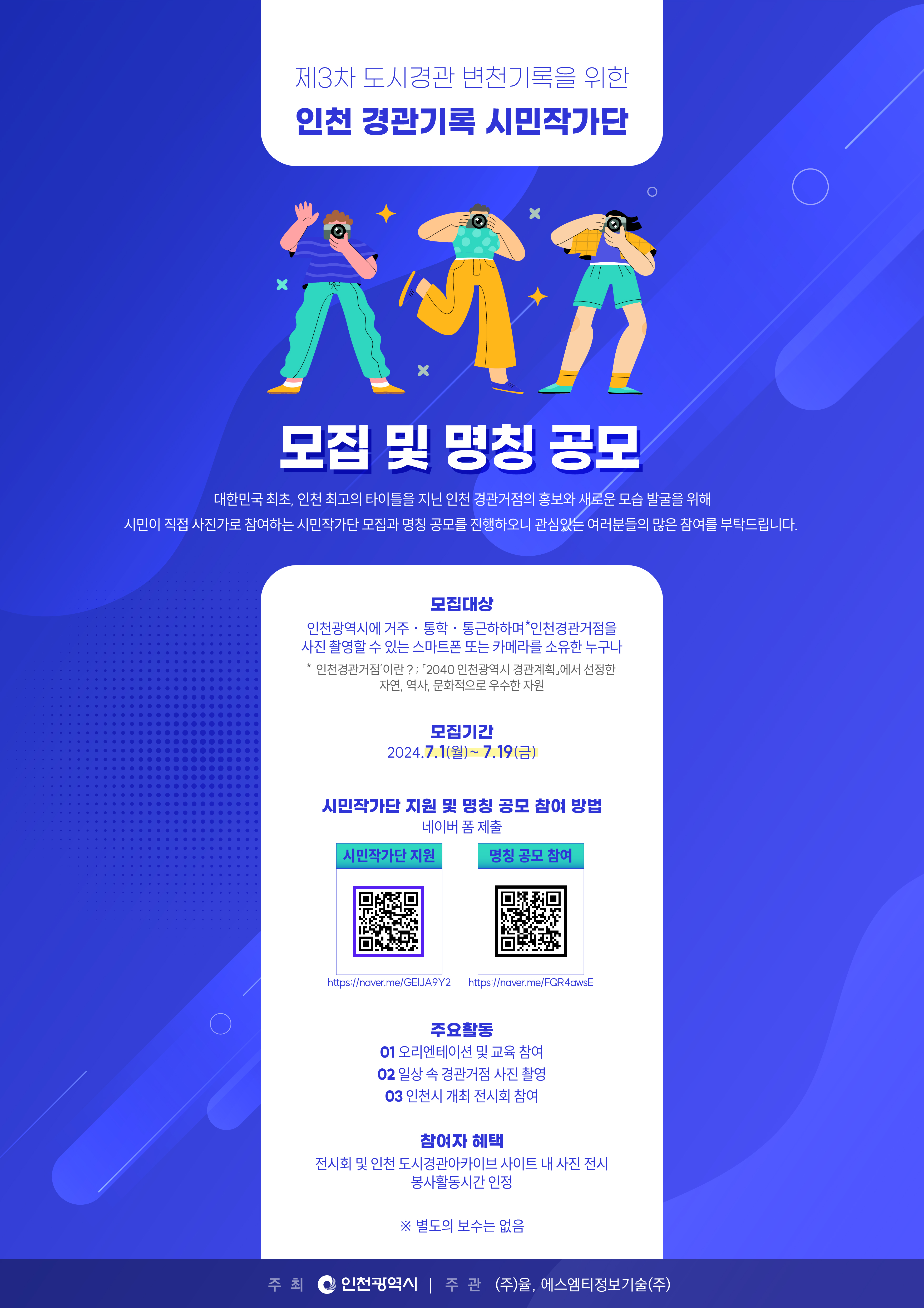 인천 경관기록 시민작가단(가칭) 모집 및 명칭공모에 많은 관심과 참여 부탁드립니다.