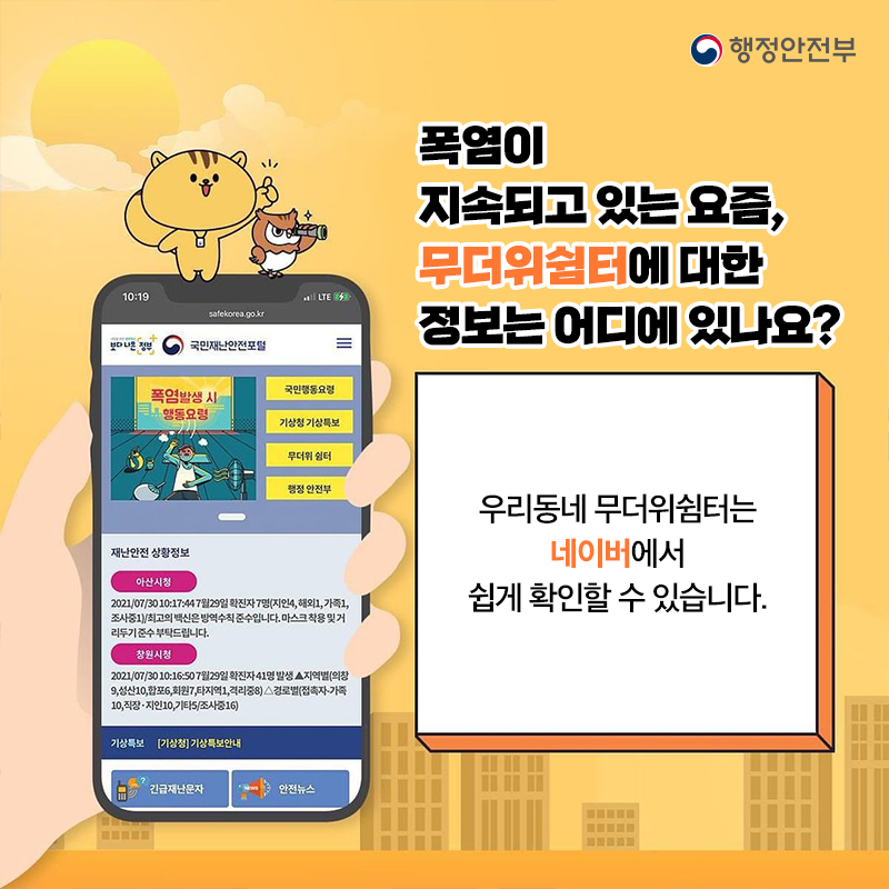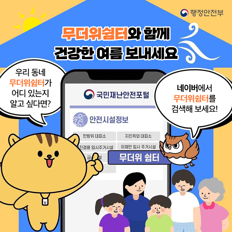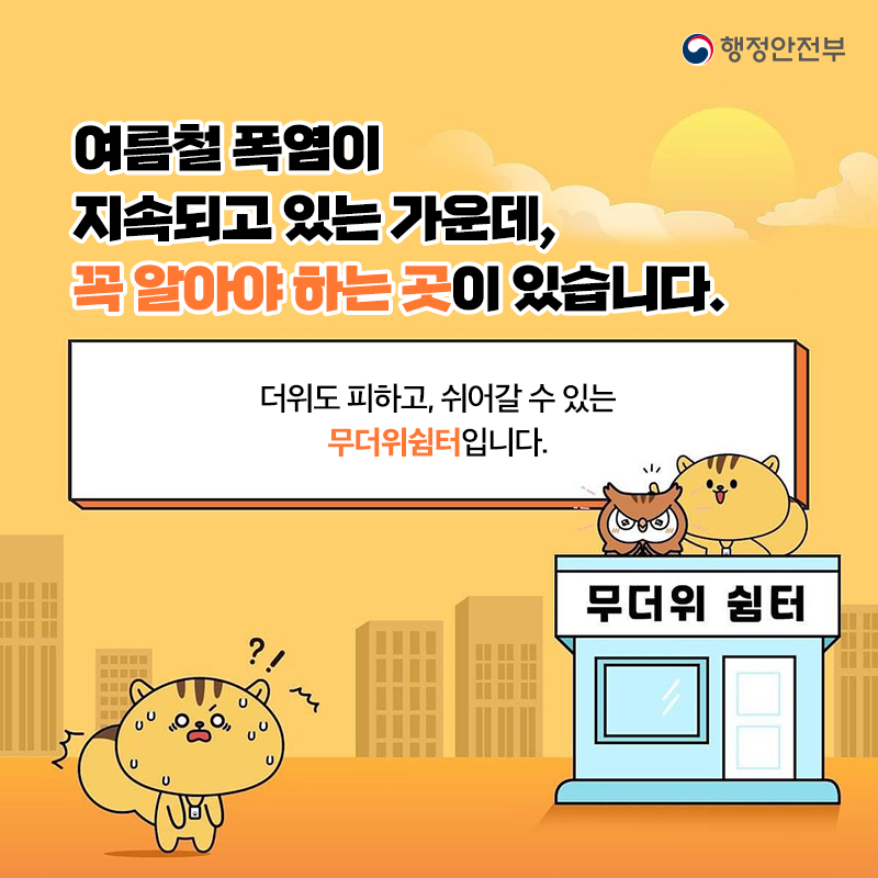 우리동네 무더위 쉼터 확인하기 👉국민재안안전포털👉 https://www.safekorea.go.kr/idsiSFK/neo/sfk/cs/sfc/htw/htweaiList.html?menuSeq=862